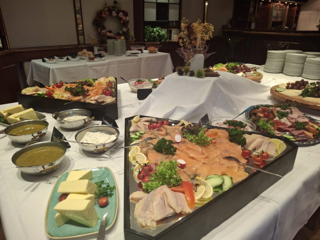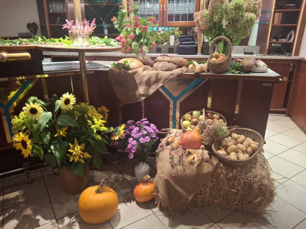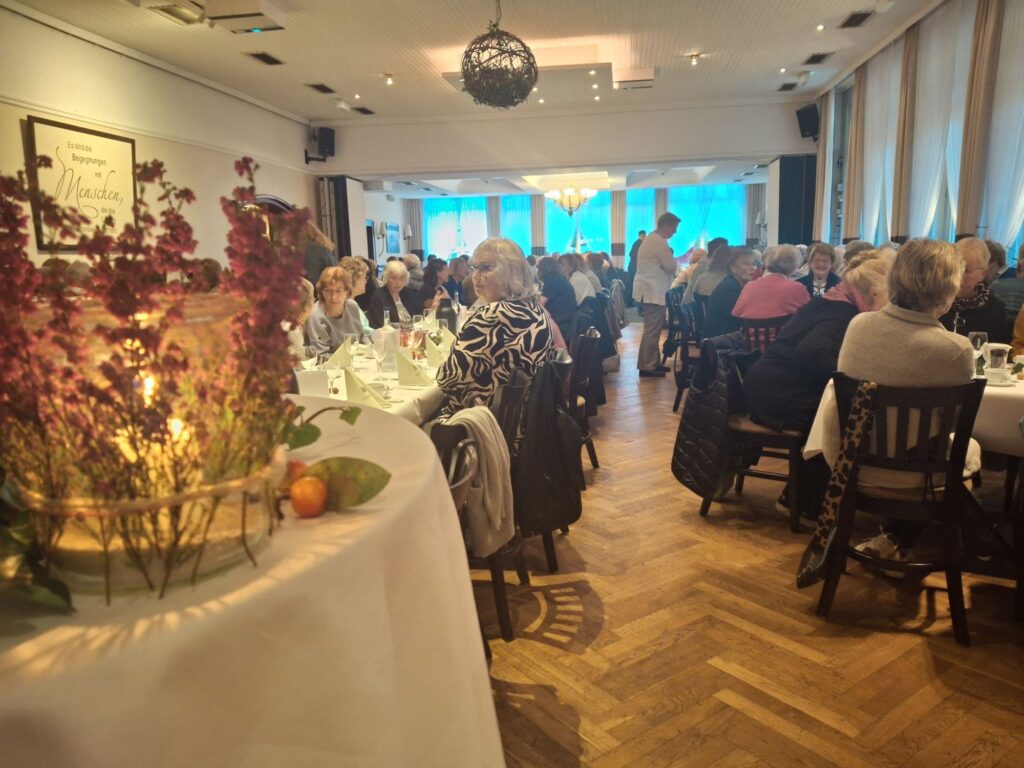 157 Frauen konnten ein tolles Frühstück im Waldhof Unterstedt genießen. Der schöne Tischschmuck passte toll zum Ernte Dank Thema.