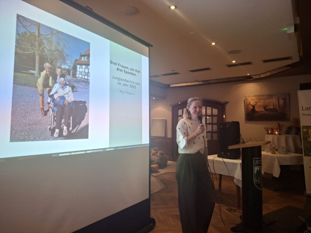 Zusätzlich gab es einen spannenden Einblick in die Führung eines Hofes über 3 Generationen und einen Ausblick auf die Ideen der künftigen Hofinhaberin.  Maja Mogwitz erzählte dazu aus ihrem bisherigen und kommenden Leben.
